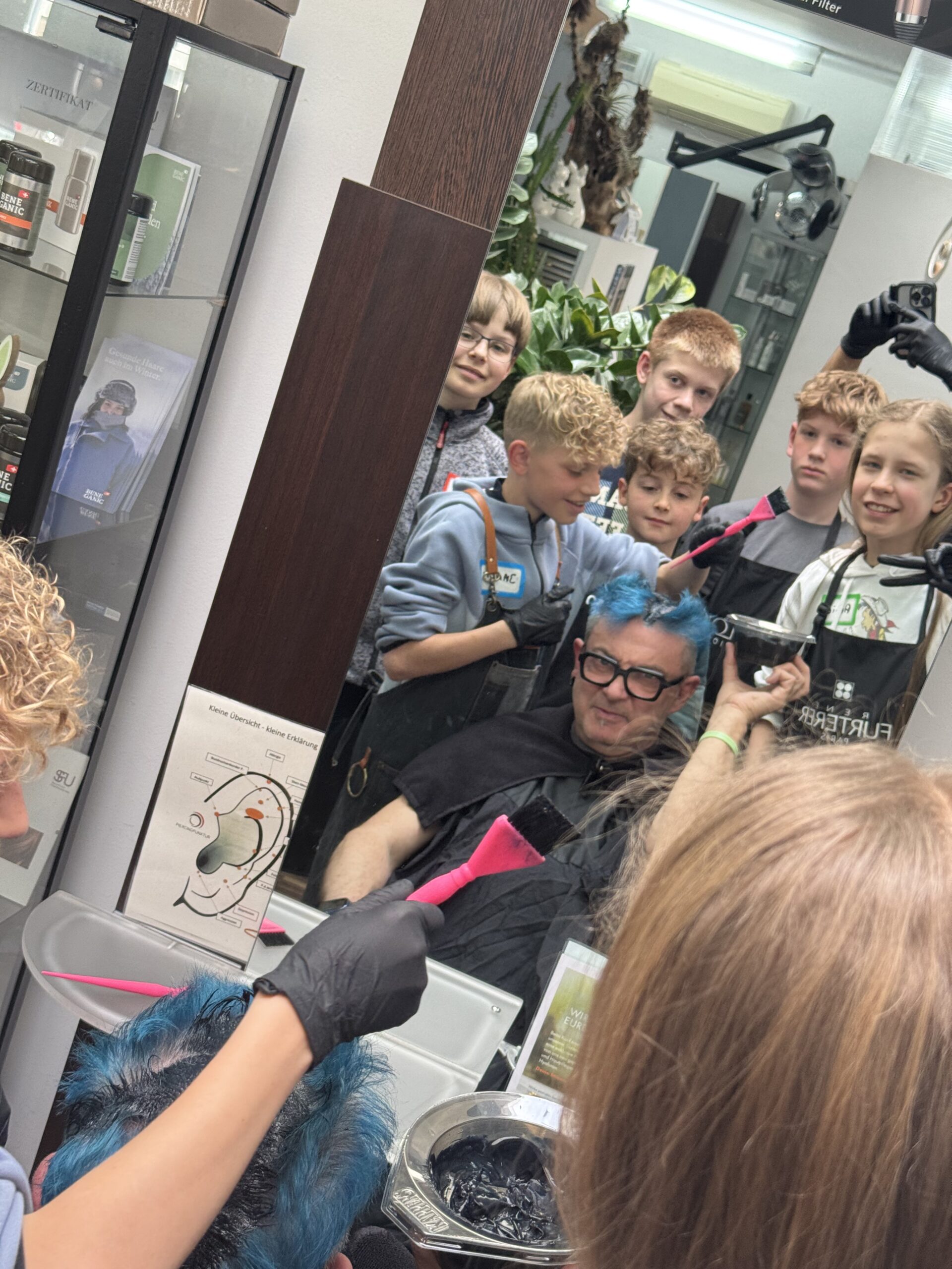Am Anfang ist oft Zurückhaltung da, insbesondere bei älteren Jugendlichen, die womöglich schon von außen beeinflusst wurden und gewisse Vorurteile über unser Handwerk mitbringen. Bei den Jüngeren ist das ganz anders: Sie sind noch nicht voreingenommen, sondern einfach neugierig. Wenn sie selbst föhnen oder Farbe auftragen dürfen und am Arbeitsalltag wirklich mitwirken können, kommt schnell echte Begeisterung auf.